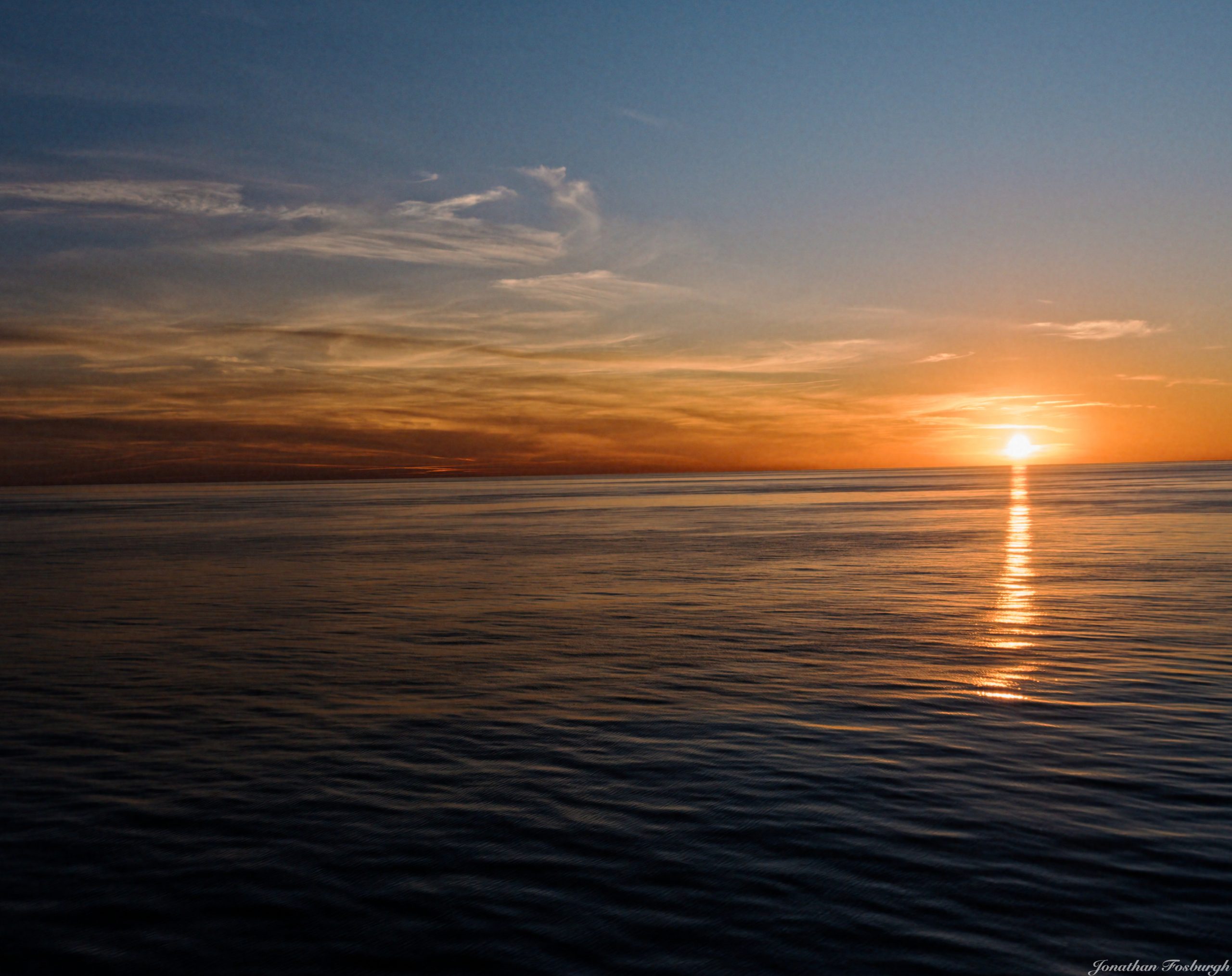 All day on the 2nd, the Gulf of Mexico was exceptionally calm. We’ve seen it calm before, but not like this. Despite some clouds way off on the horizon, I got some great sunset shots, including an unexpected treat that I will get to in due time.